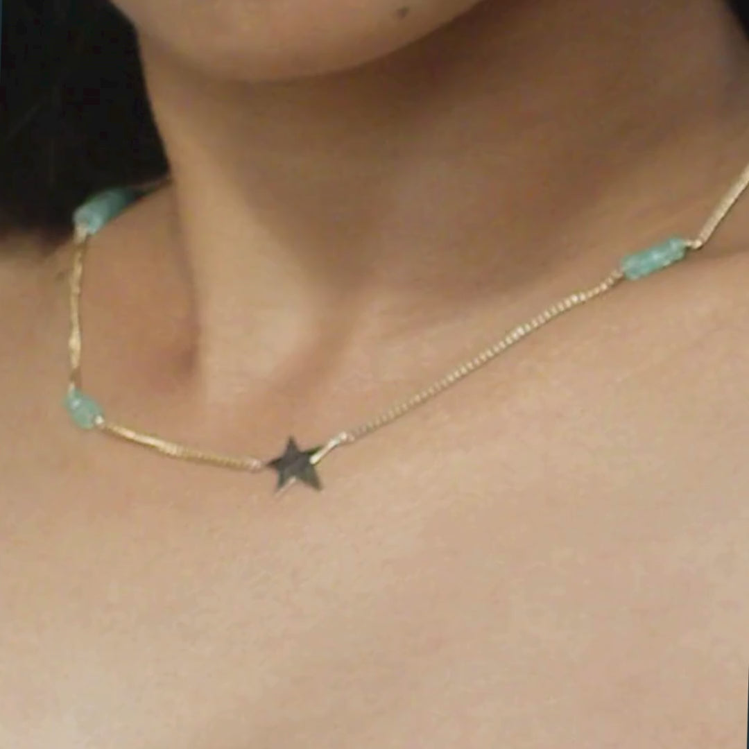 Guided by the maker’s hand, North Star glows with hand-faceted emeralds and a signature golden star. Set on a yellow gold diamond-cut chain that catches light with every move - a symbol of direction, strength, and self-made light.